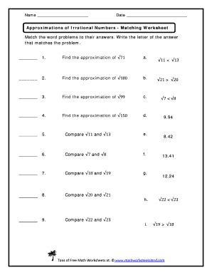 Approximations Of Irrational Numbers Matching Worksheet Answers